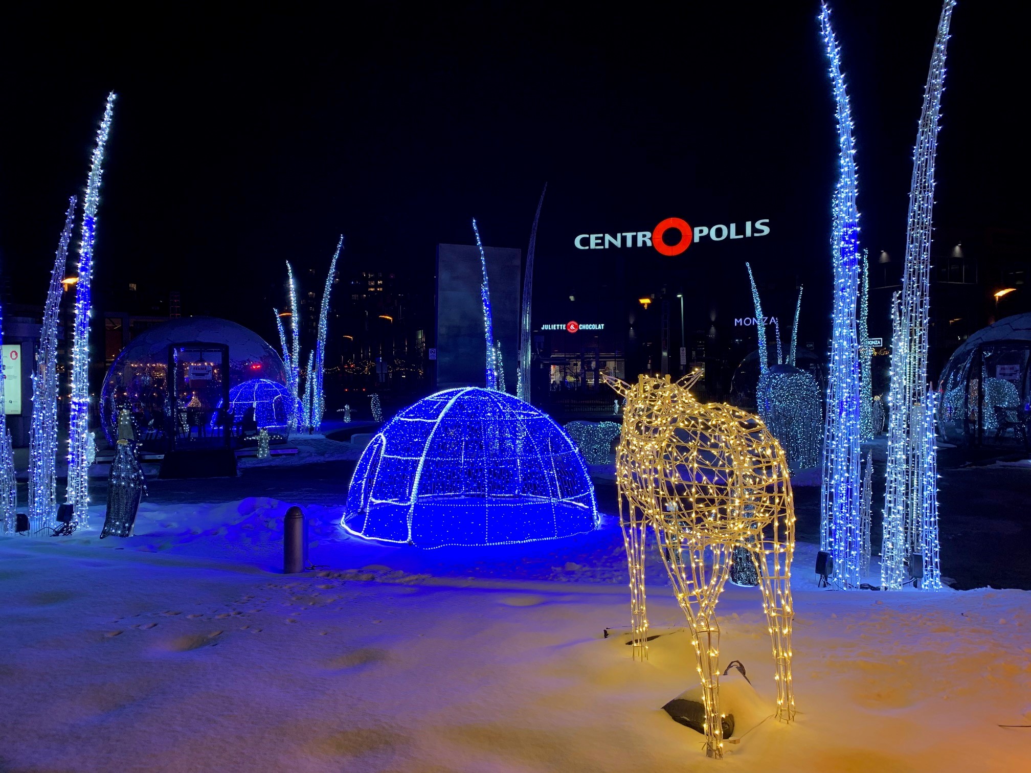 L’hiver s’annonce plus invitant que jamais à la Place Centrale de Centropolis avec cette nouvelle terrasse et les trois bulles aménagées et chauffées, pouvant accueillir jusqu’à six personnes chacune. Vous pourrez vivre une expérience unique et inoubliable en partageant un délicieux repas en soirée dans une bulle, tout en admirant les étoiles et les pièces lumineuses d’Illumi.